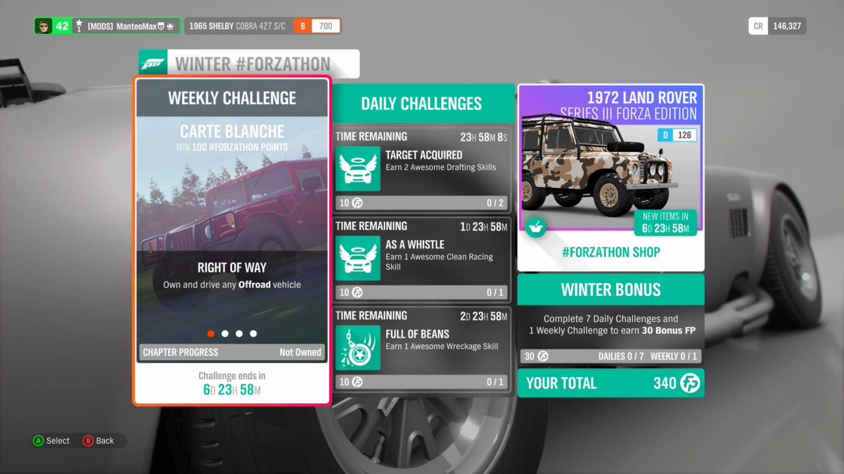 Winter Forzathon Cars And Content Through October 18